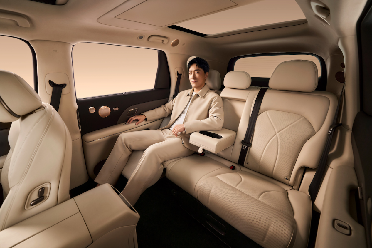 空间与奢享上,大五座版本媲美行政级MPV,满载状态下仍能容纳15个20寸行李箱,大六座版本座座宽适,彻底告别三排“小板凳”。座舱内高定头层真皮、柔感麂绒顶棚的搭配,再加上中国首搭的百年B&O音响、4D机械按摩座椅,将“新奢华”融入每一处细节。