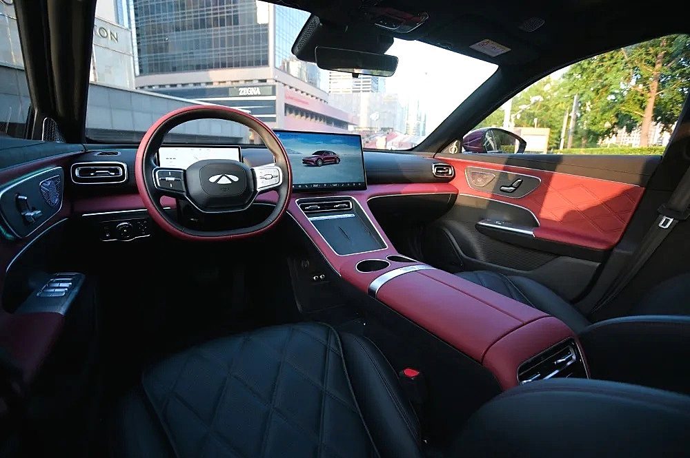 内饰方面,风云A9L采用5纵3横一体化座舱设计,中控台大面积覆盖软性材质与木纹饰板,部分区域辅以麂皮材质点缀,豪华氛围突出。