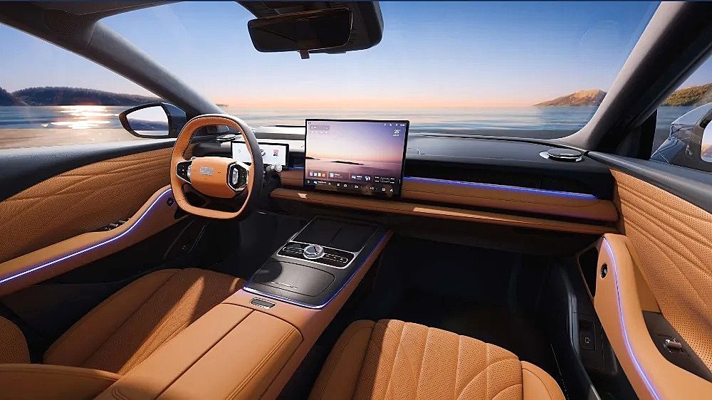 内饰方面,银河星耀8整体采用环抱式座舱布局,中控区域配备15.4英寸悬浮式中控屏,仪表盘则采用嵌入式全液晶设计,整体视觉效果简洁而富有层次感。