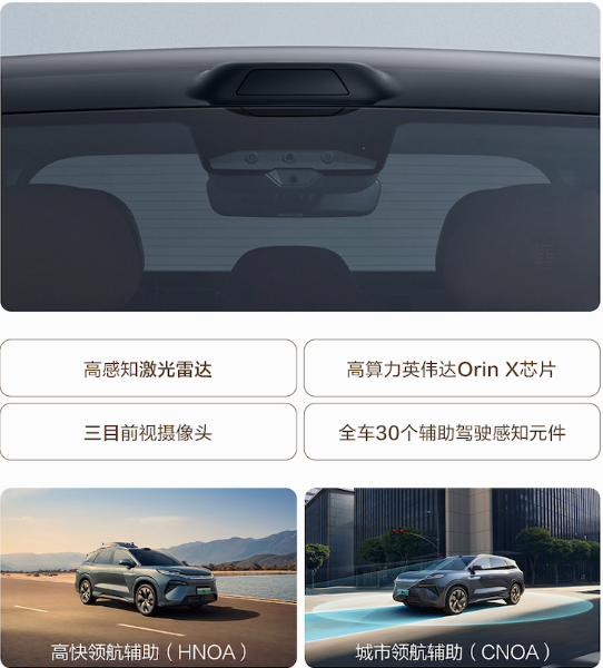 除此之外辅助驾驶表现如何也是关乎“开起来”是否顺心的关键点,唐L全系搭载天神之眼 B - 辅助驾驶激光版(DiPilot 300),拥有1个激光雷达、5个毫米波雷达、12个超声波雷达、12个高清摄像头,可实现“车位到车位”领航辅助功能、领航辅助、泊车辅助、主动安全四大核心能力,位居业内辅助驾驶第一梯队。而银河M9则是拥有千里浩瀚H5辅助驾驶系统,拥有1个激光雷达、3个毫米波雷达、12个超声波雷达、11个高清摄像头,不仅在硬件配置上要稍逊一些,软件上搭载的英伟达orinY芯片可提供200TOPS的算力相较于唐L DM搭载的英伟达orinX芯片可提供254TOPS的算力,也要稍微差一点。所以两台车的辅助驾驶,无论在城市还是高速的复杂路况时唐L DM要更加得心应手。更符合当下市场对于辅助驾驶表现的期待。作为一台照顾全家出行的全能SUV,辅助驾驶表现优异不仅能缓解长途用车的疲劳感,也能带来主动安全的全方位呵护。