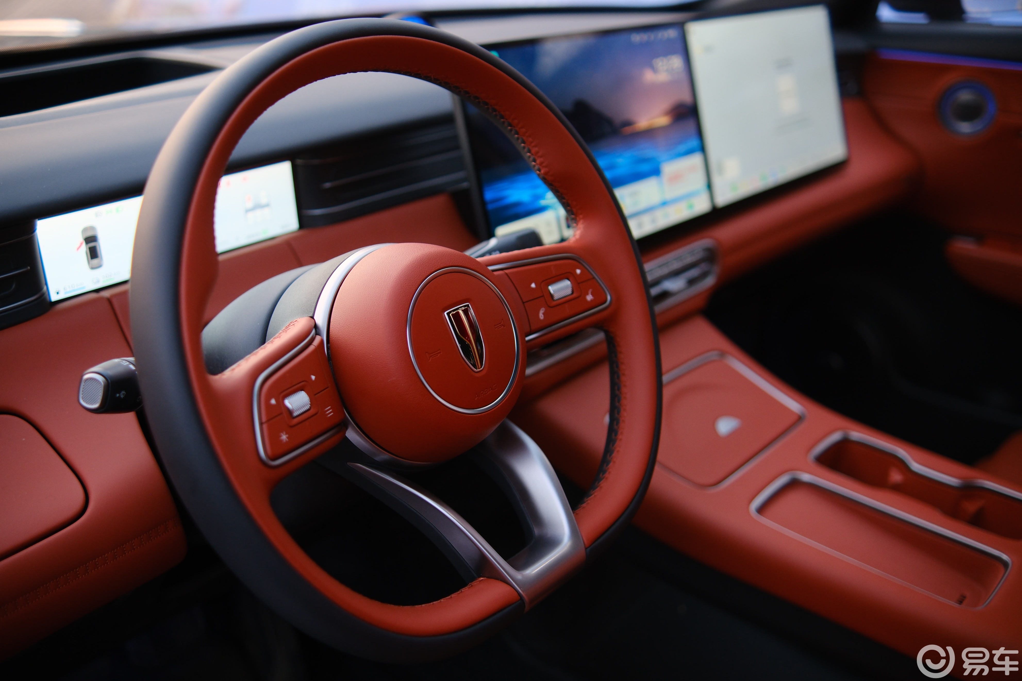 来到车内,豪华感和科技感扑面而来,车内大面积采用了真皮及软材质包裹,触手可及之处皆是细腻。同级领先的30吋AR-HUD,全系标配15.6+15.6吋2.5K双联屏、科技感拉满。