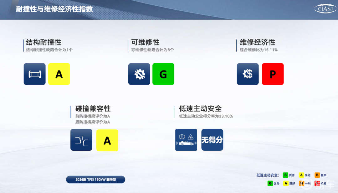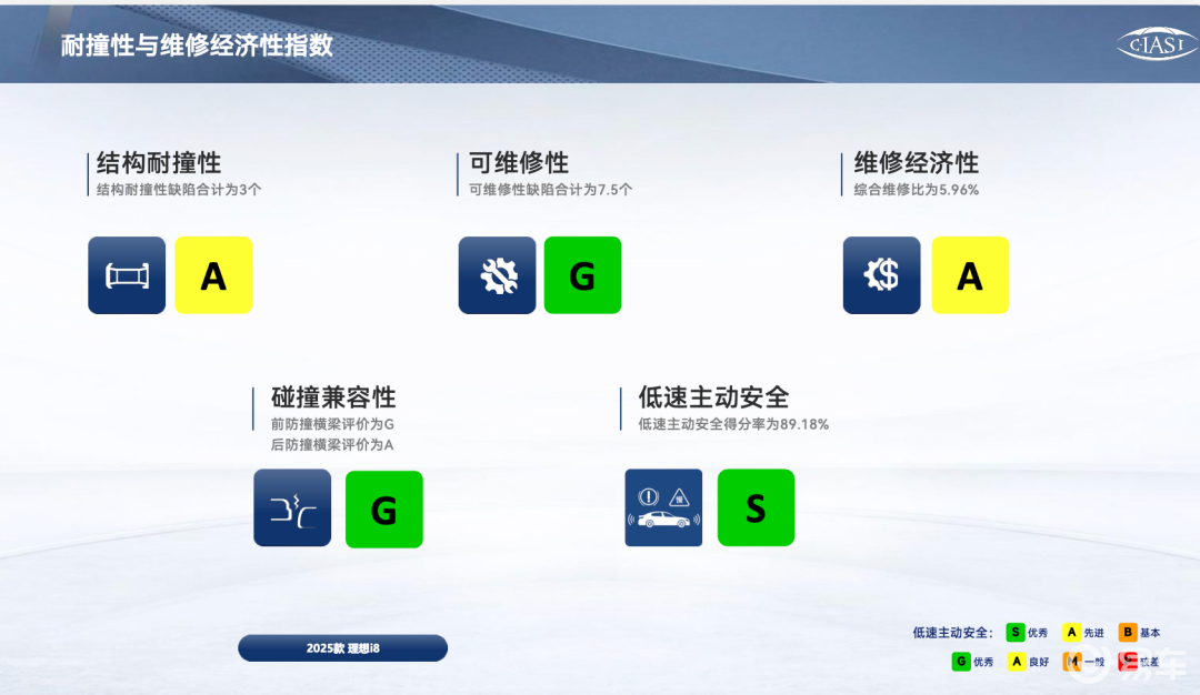 C-IASI中保研测的不仅仅是安全水平,其实也考察了一个车企的工程集成水平(耐撞与经济维修性)和智能技术水平(辅助安全),这是非常有参考意义的测试。