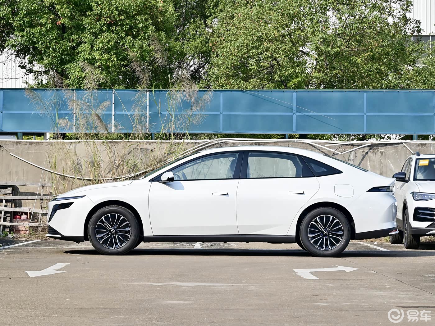 外观方面,车头较为扁平低趴,封闭式前脸简洁,中间位置有可发光的车标Logo,横向灯带与日间行车灯相连,形成了贯穿式效果,下方L状的熏黑灯组内置LED远近光。