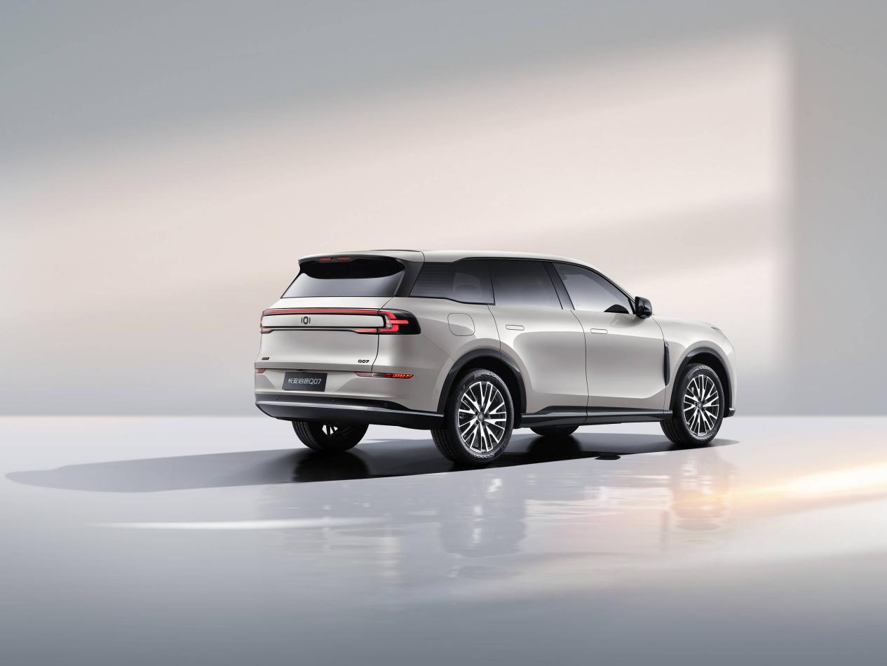 长安启源 Q07 车身尺寸为4858×1935×1765mm,轴距2905mm,同样采用五座布局,前排、后排和后备厢纵深都超过1 米,后排空间层高达到1 米 2 以上,对后排乘客的头部空间非常友好。